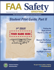The September/October 2014 issue of FAA Safety Briefing focuses on the world of student pilots and airmen-in-training.  This issue explores additional tips and resources to help provide a successful path to initial pilot certification, as well as provide a refresher to those more experienced aviators!